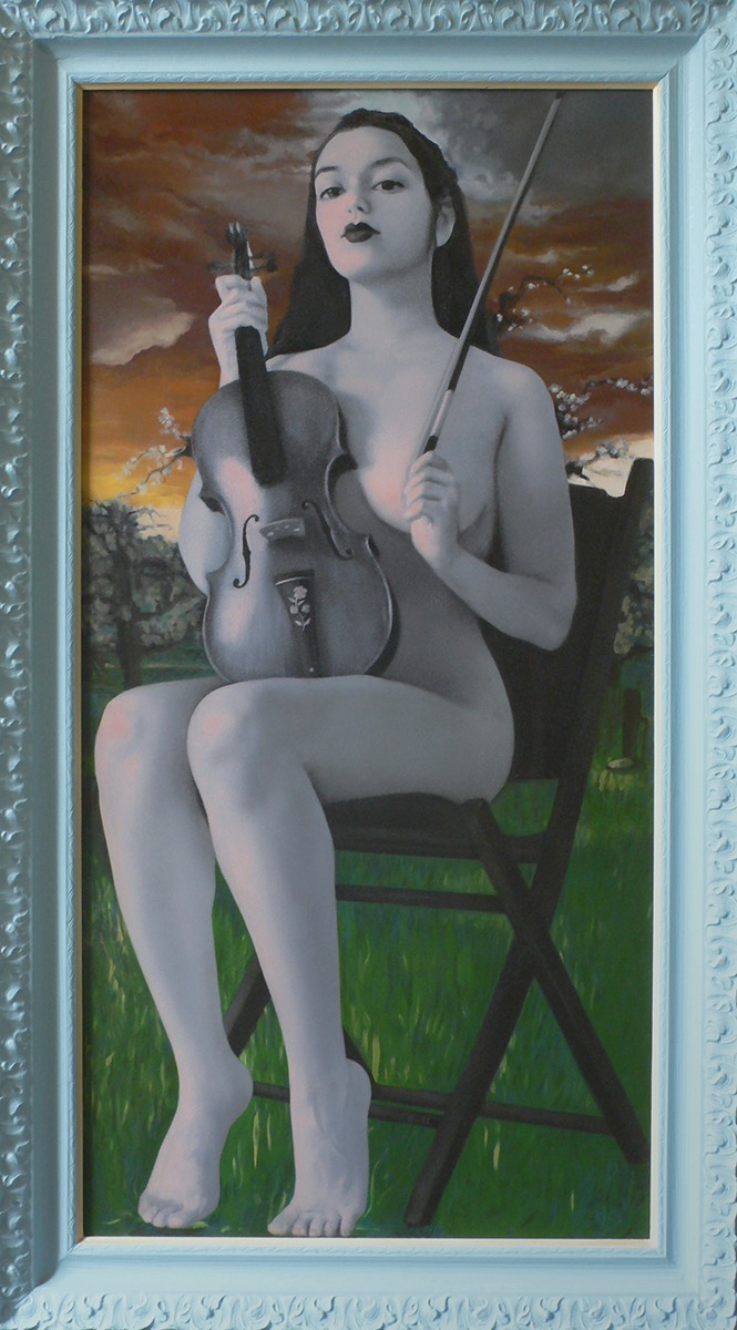 105, 2010-11, Lyre Plyre, oil on panel, 17.5 x 23.5 in. ❶