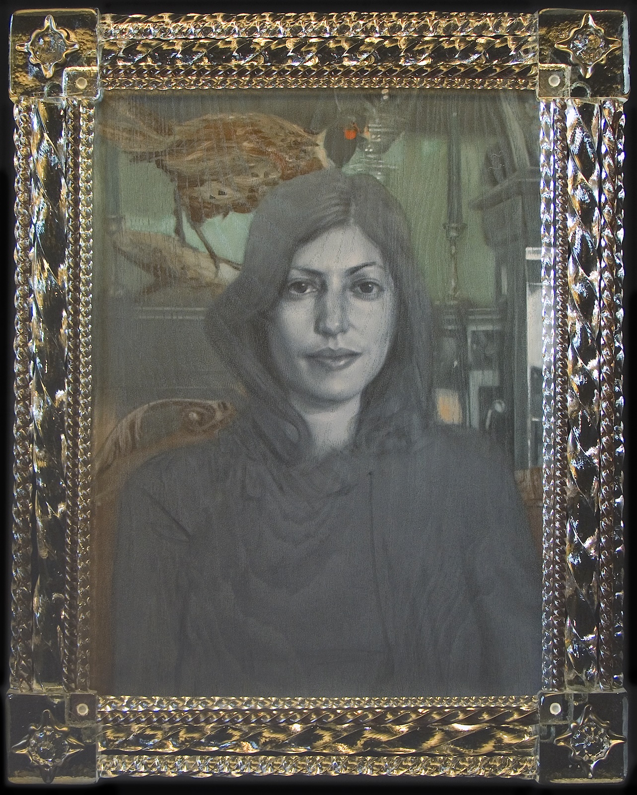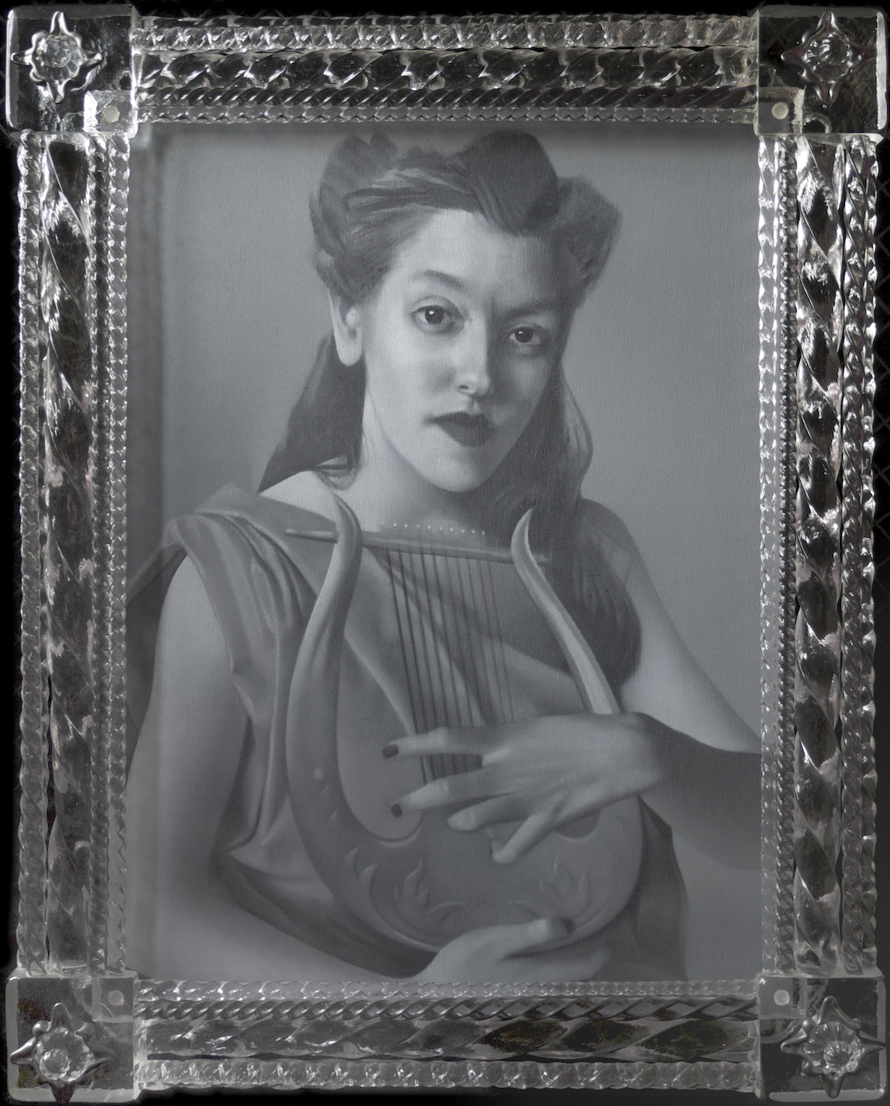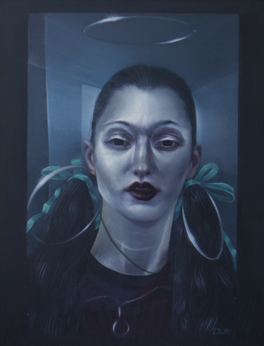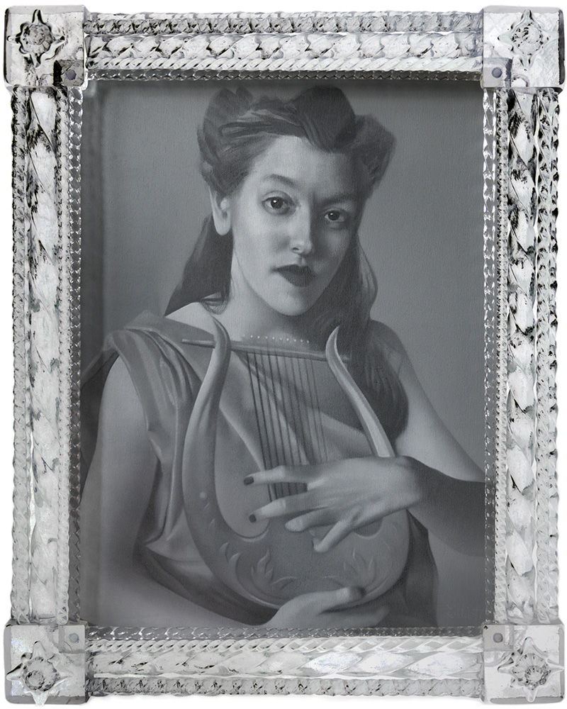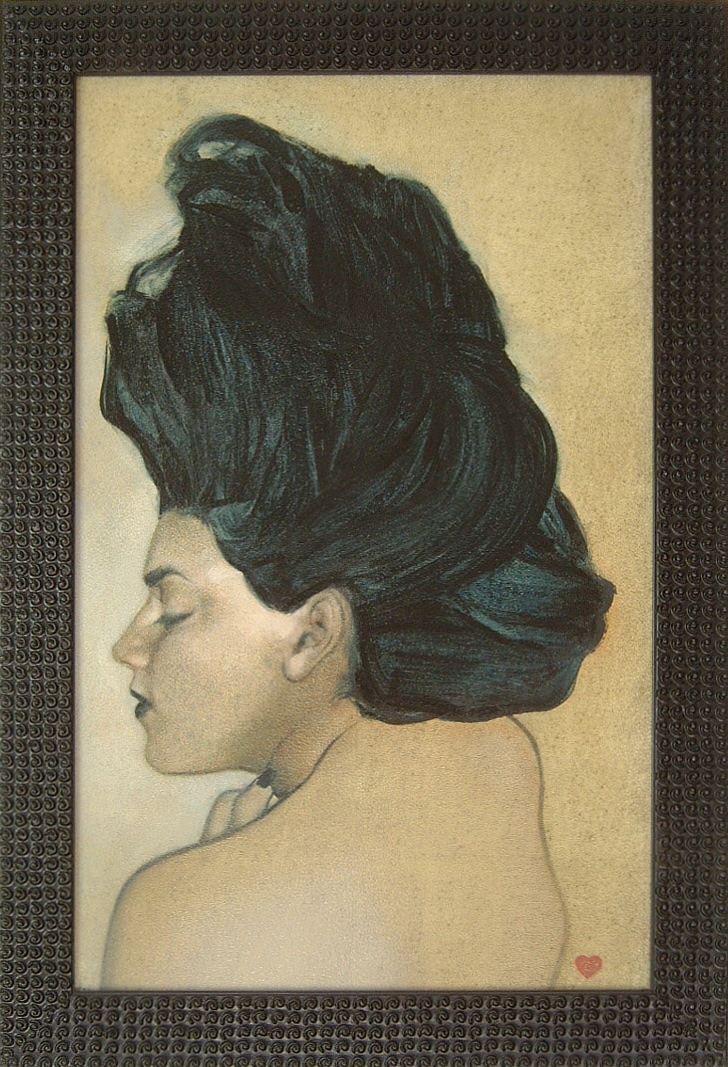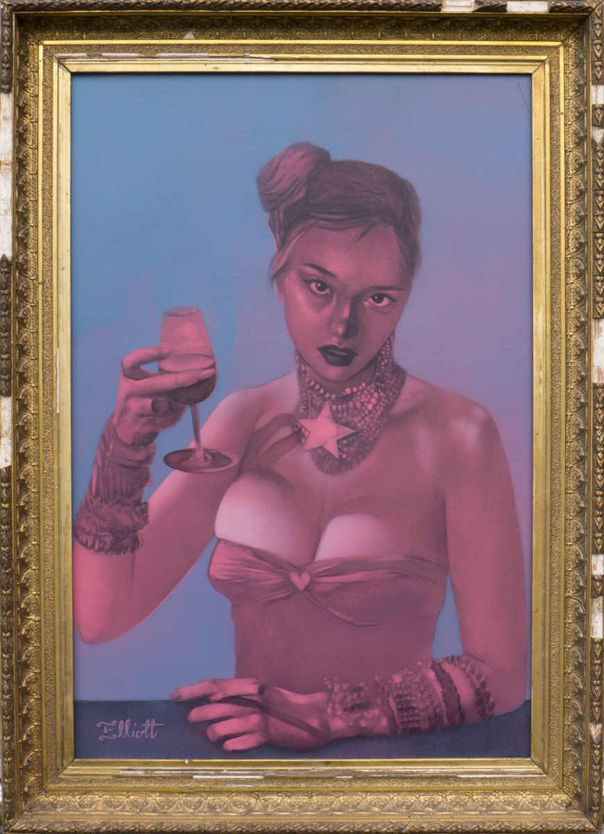 “The wild card of the bunch is Elliott Wall…. His standout piece in the Insolitus show is Lyre Plyre… [he] twists the woman’s locks into an up-do that is part Cleopatra and part 1920s flapper encased in a baroque glass frame – so ersatz rococo it would be at home in a Tijuana watering hole or at least a self-consciously hip dive bar.”
