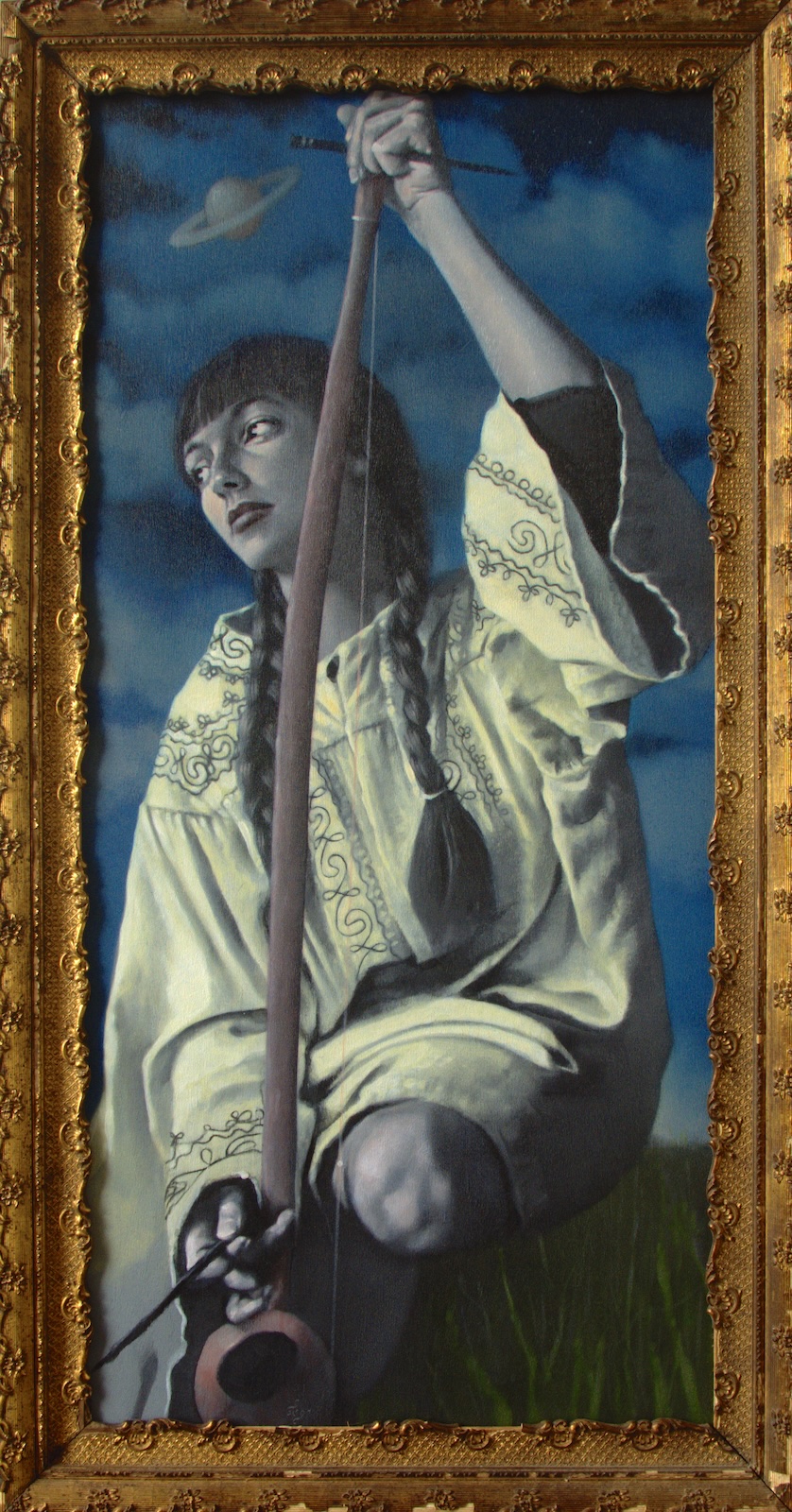 71, 2008-03, Vulcan berimbau, oil on panel, 19 x 40 in.