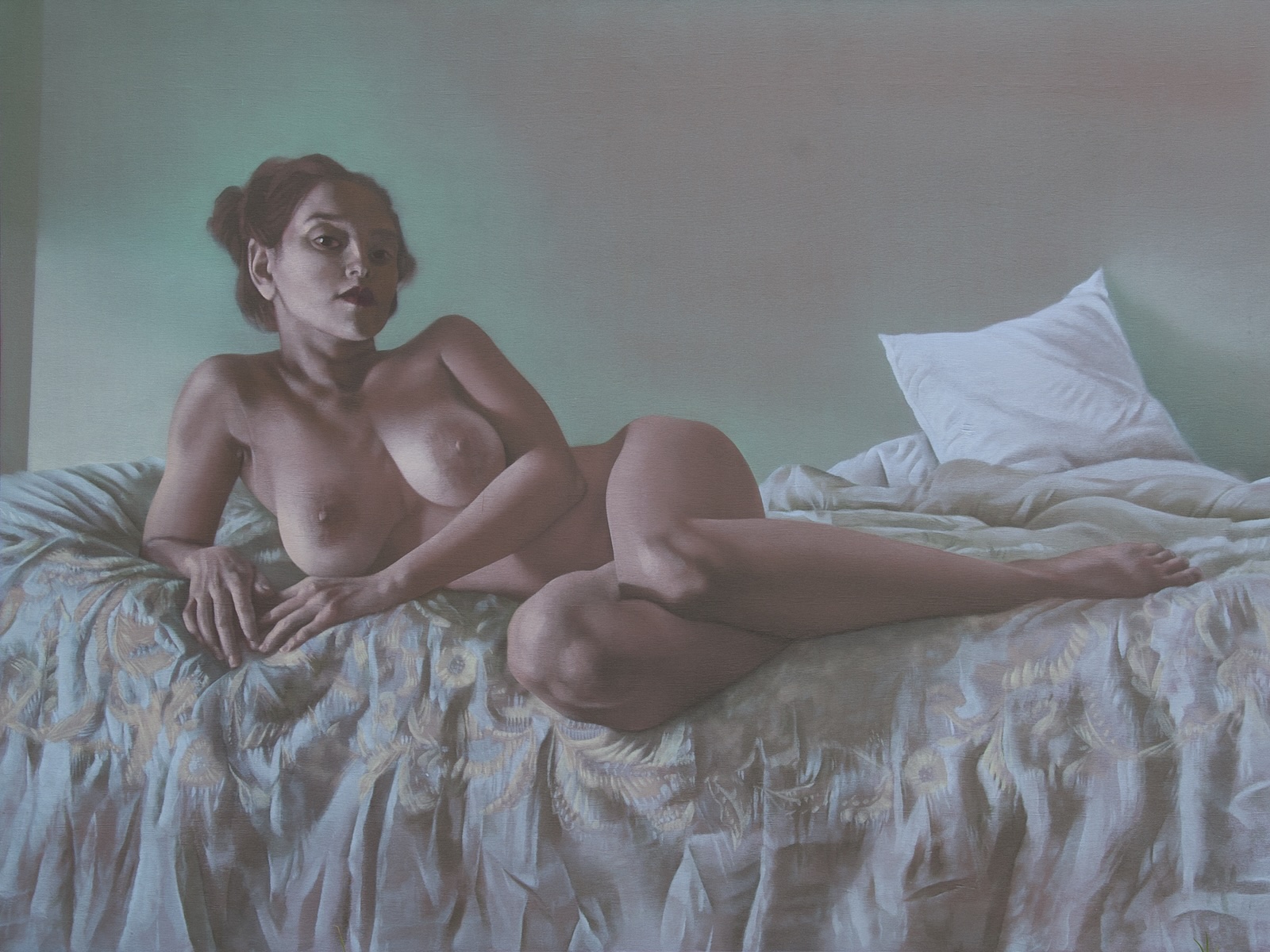 “Wall follows the nineteenth century convention for figure studies involving a nude female, in which the model is portrayed as the guise of some classical goddess or mythic maiden…. The challenge to realist painting from photography, dating from the late nineteenth century, fades today in comparison with the mimetic capacity of digital technology to create and manipulate high-definition, 3-D imagery. Perhaps the only effective response can be found in the work on view in Insolitus, one which is marked, in the approach of all three artists, by an overriding sense of creative control and an underlying concern for poetic import.”